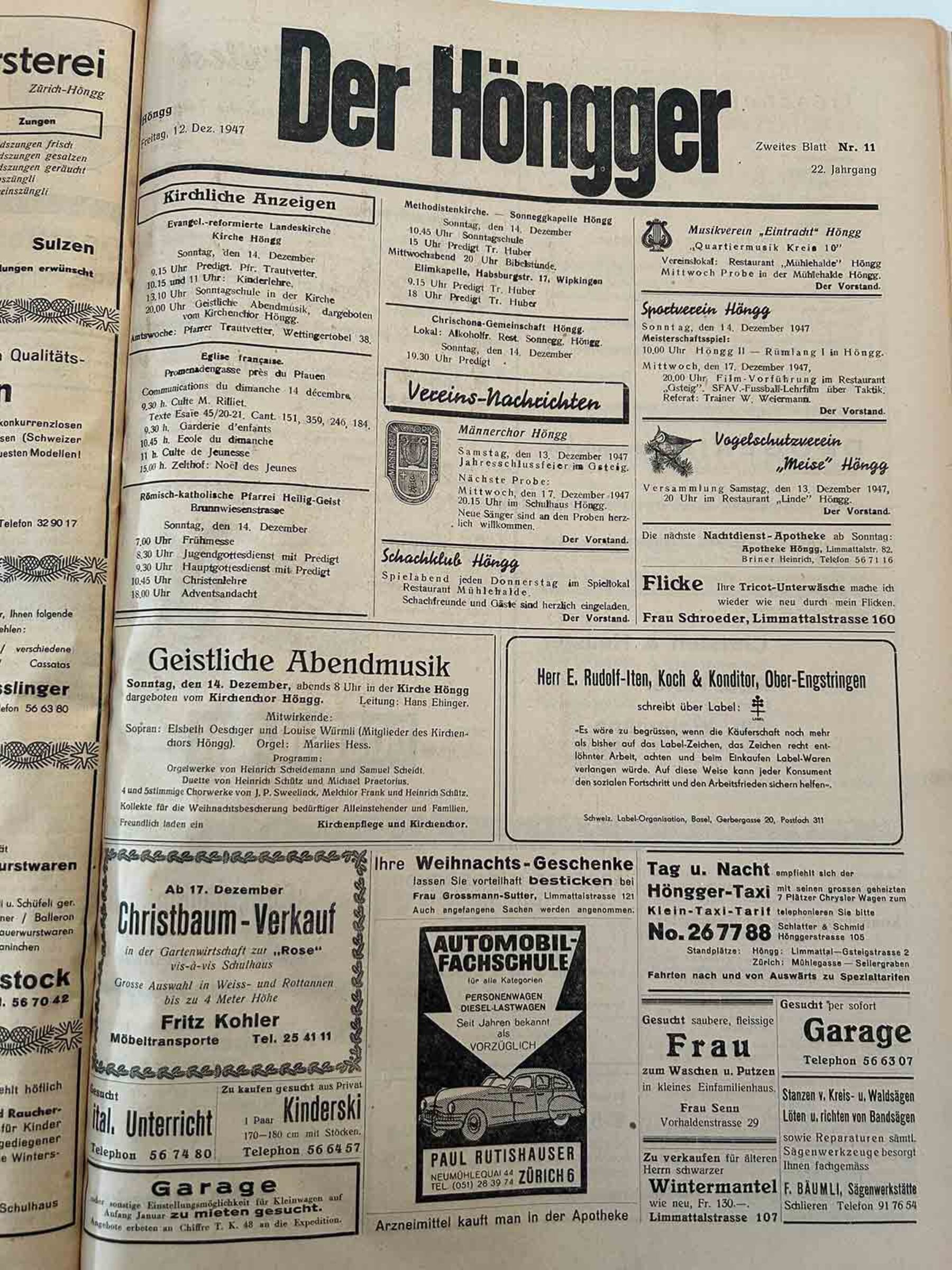 Obwohl «Der Höngger» bis anhin per Abonnement erhältlich war, gab es im November 1949 einen Hinweis auf der Frontseite: Im Dezember werde die Zeitung nämlich an alle Haushalte in Höngg zugestellt – vier Ausgaben. Der erste Schritt in Richtung Zukunft. Lohnend waren die Dezember-Ausgaben, da sie viele Inserate enthielten.