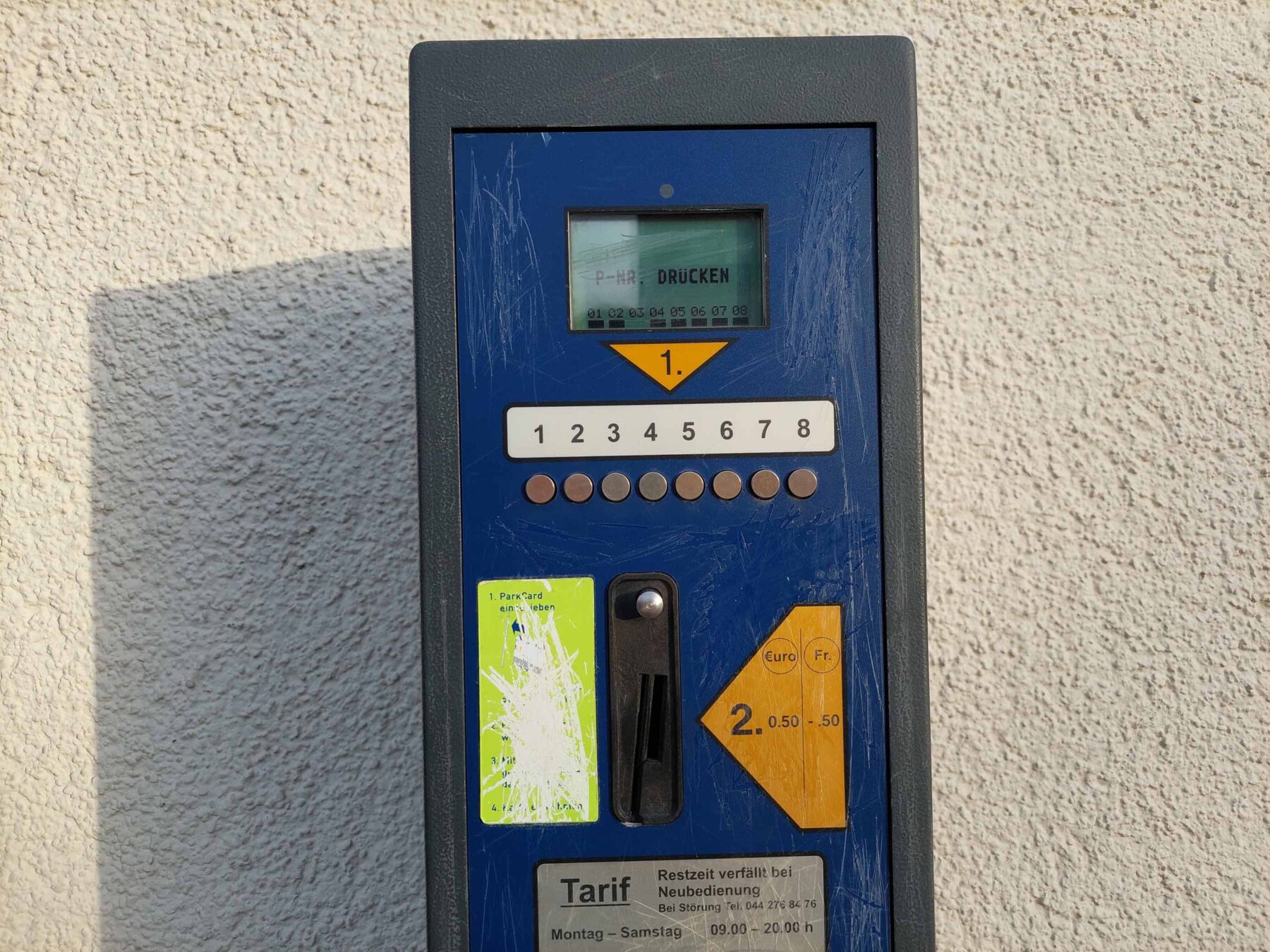Die Parkgebühren können Autofahrer*innen bar in Schweizer Franken, mit Bankkarte via NFC (Nahfeldkommunikation) oder über die Parking-Apps EasyPark und Parkingpay inklusive TWINT bezahlen. Die QR-Codes zu den Parking-Apps wurden aufgrund von Betrugsversuchen entfernt.