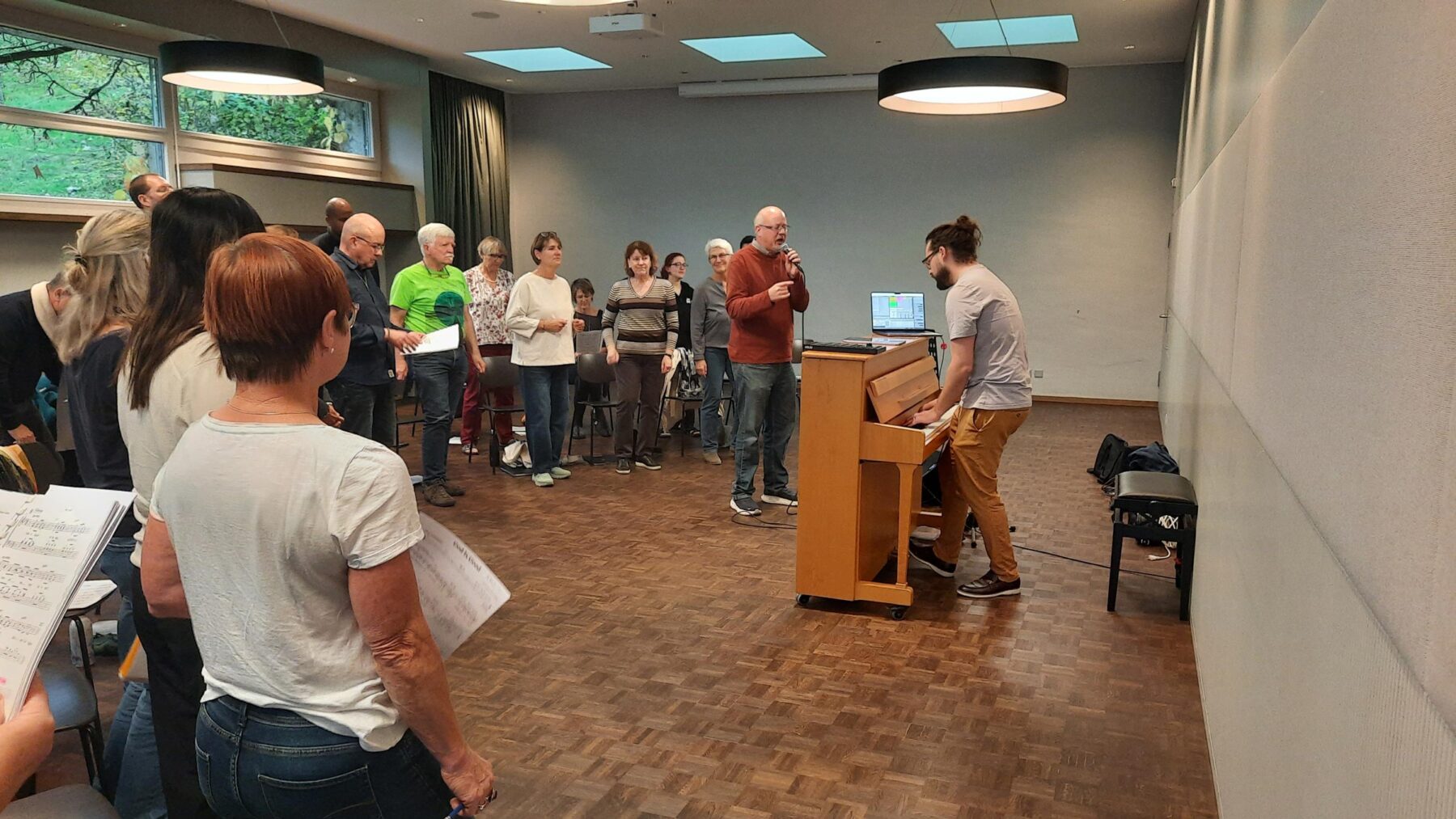 Die afrikanischen Gospels «Baba yetu» und «Avulekile» verlangten besondere Aufmerksamkeit. Der Text und die Rhythmik müssen genau sein, sonst verlieren die Songs ihre Ausstrahlung. Das Gleiche gilt für die getragenen Gospels «Come Closer» und «More Than Anything». Auch die Solistinnen und Solisten aus dem Chor brauchten Zeit, um ihre Einsätze und Songs mit dem Chor zu üben. Nach dem feinen Abendessen lichteten sich die Reihen auffallend schnell – die konzentrierte Arbeit machte müde, hat sich aber sehr gelohnt.