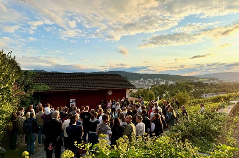 Der Neuzuzügeranlass in Höngg lockte am Dienstagabend über 100 Interessierte auf den Meierhofplatz – darunter auch Kinder und einen Hund.