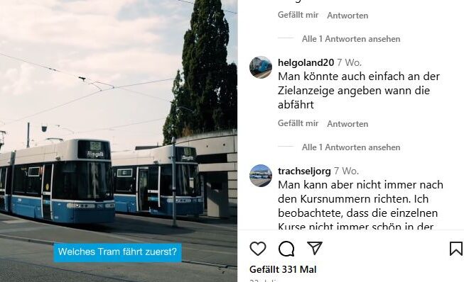 Zu den Hauptverkehrszeiten warten oftmals zwei Trams der Linie 13 am Frankental. Doch welches fährt zuerst? Die VBZ geben die Antwort – auch per Video.