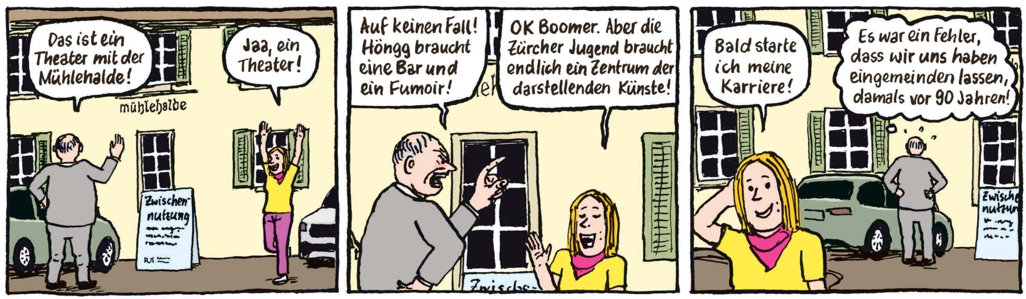 Zwei Comicstrips von Stefan Haller, die im «Höngger» erschienen sind, werden im Maison du Dessin de Presse in Morges gezeigt.