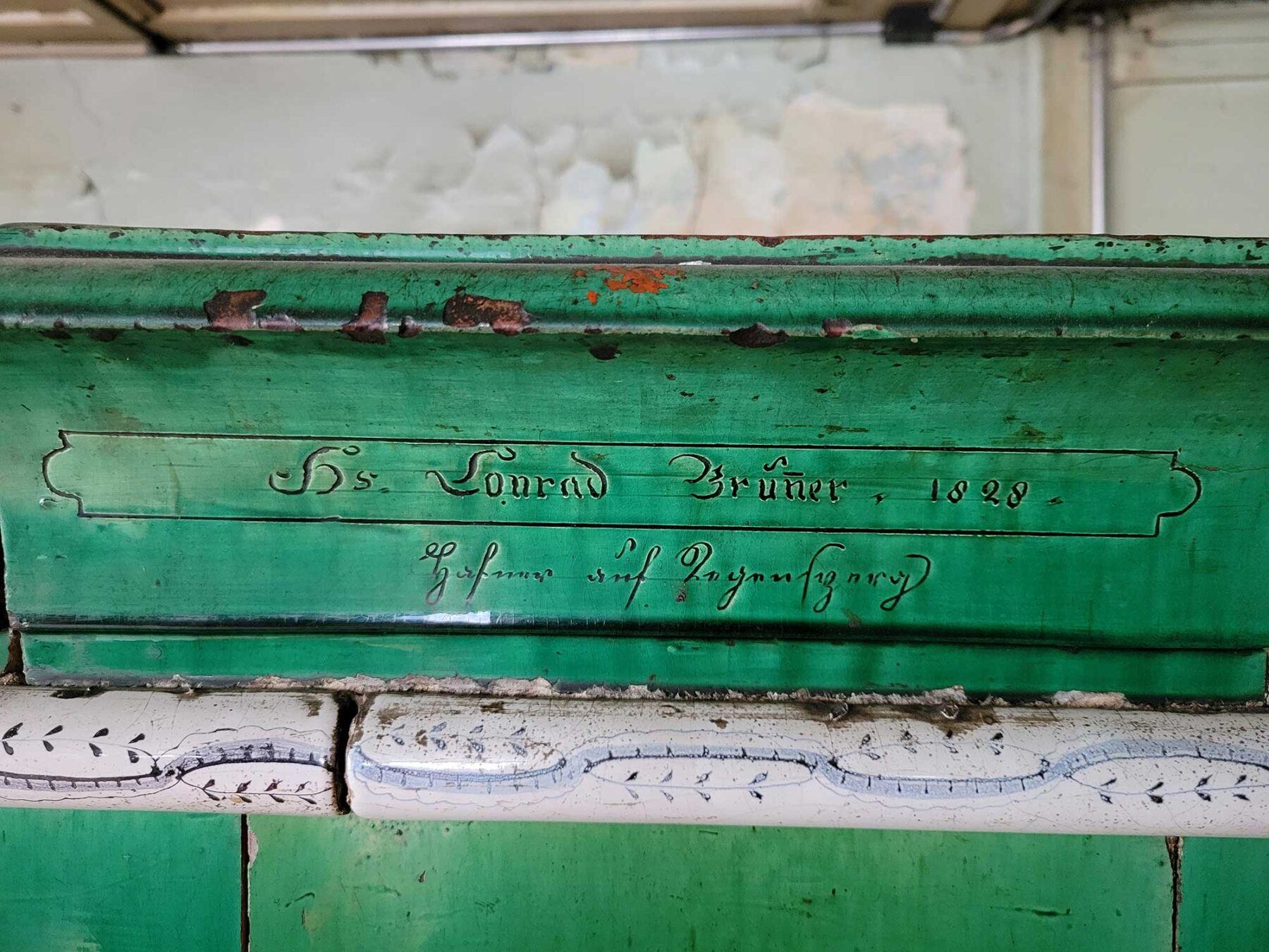 In einem Wohnhaus am Meierhofplatz in Höngg fand die Stadtarchäologie Zürich einen Kachelofen aus dem 19. Jahrhundert – mit kunstvoller Signatur des Ofenbauers.