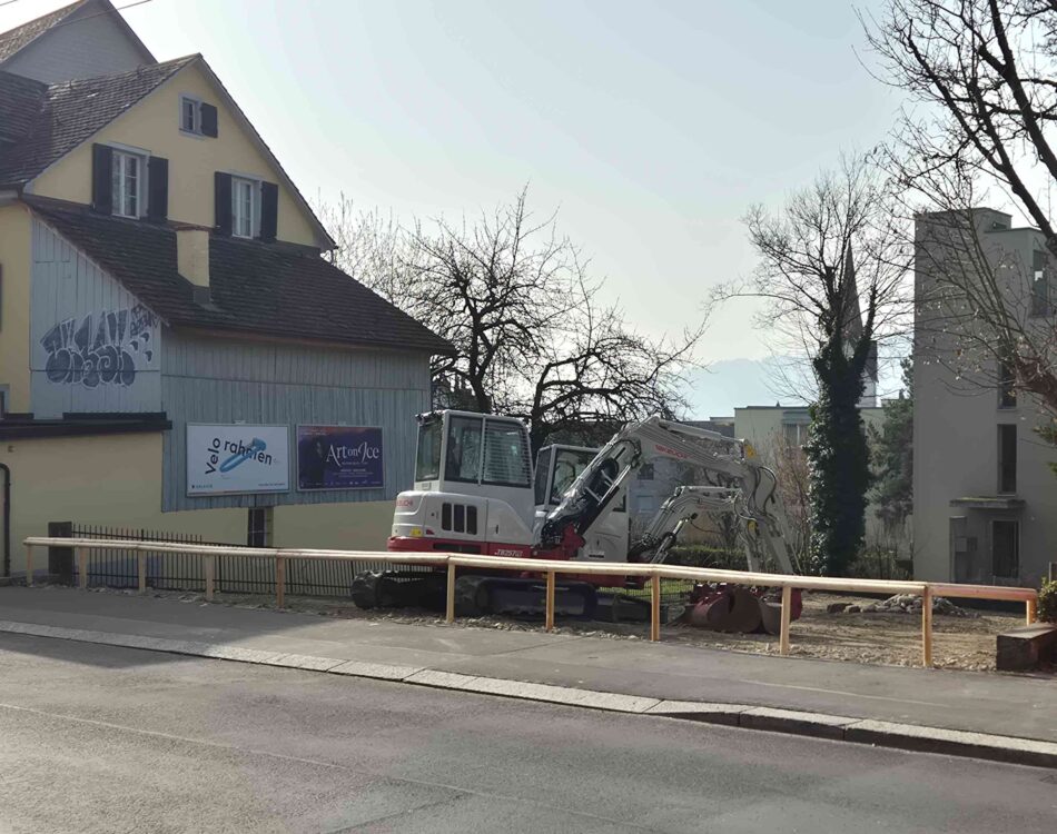 Der Parkplatz bei der Regensdorferstrasse 19 wird aktuell zurückgebaut und durch eine Wiese ersetzt.